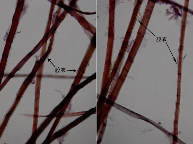 圖3. 構(gòu)皮纖維表面的透明膠衣(200 倍)?