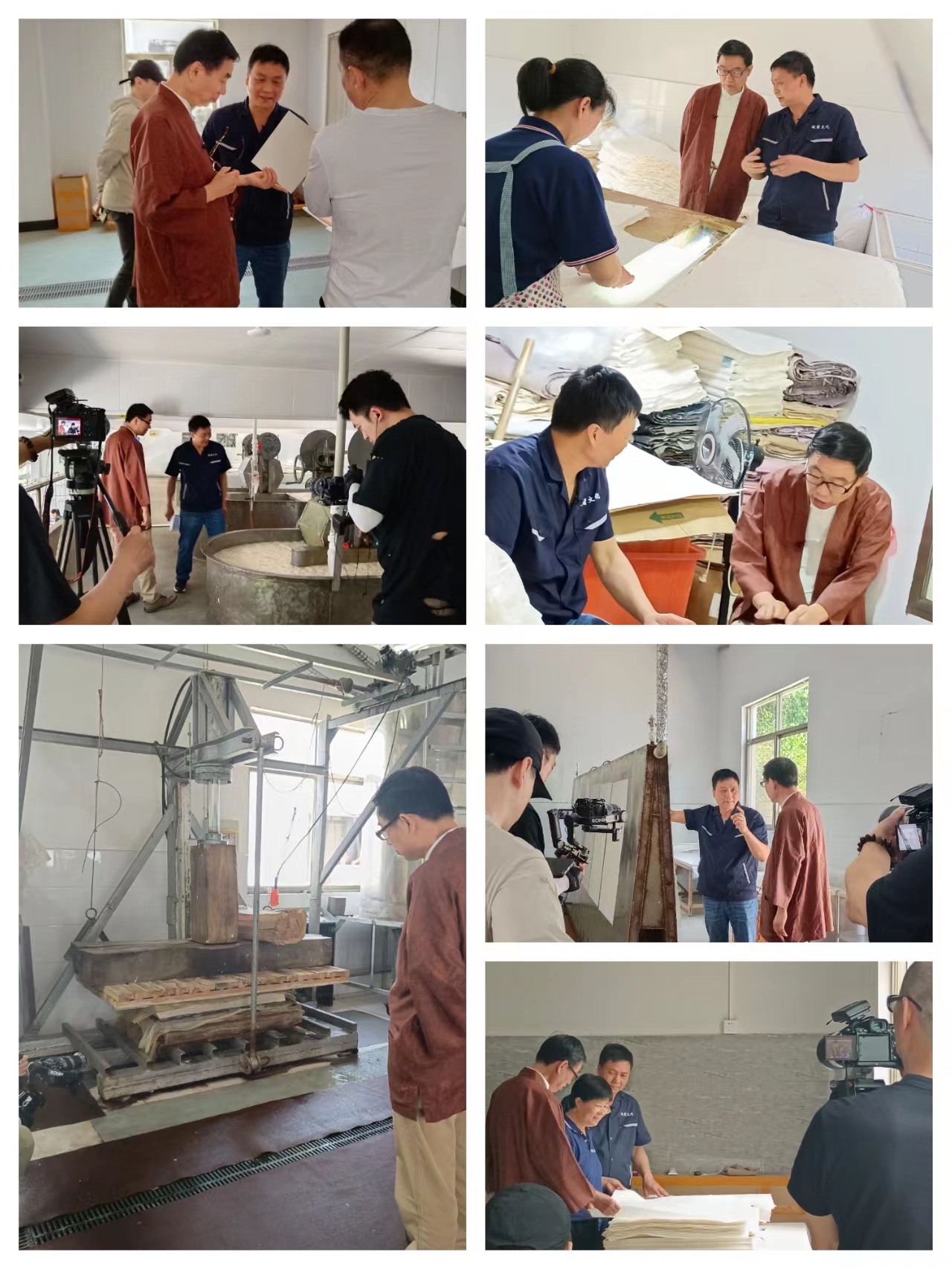 在黃山市凝霜文化發(fā)展有限公司,欄目攝制組全程記錄徽州楮皮紙第二代傳承人、非遺傳承人朱建新的徽州楮皮紙制作技藝?!段幕笥^園》總策劃、主持人王魯湘詳細了解徽州楮皮紙的優(yōu)勢,制作的傳承和發(fā)展,并與徽州楮皮紙第二代傳承人朱建新面對面暢聊古法造紙和新技的結(jié)合。